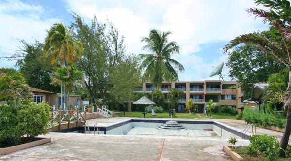 As you walk through the lobby, pass the water-fountain, you enter the spacious front garden facing the swimming pool, beyond which leads you to the crystal-clear waters of the Caribbean Ocean.